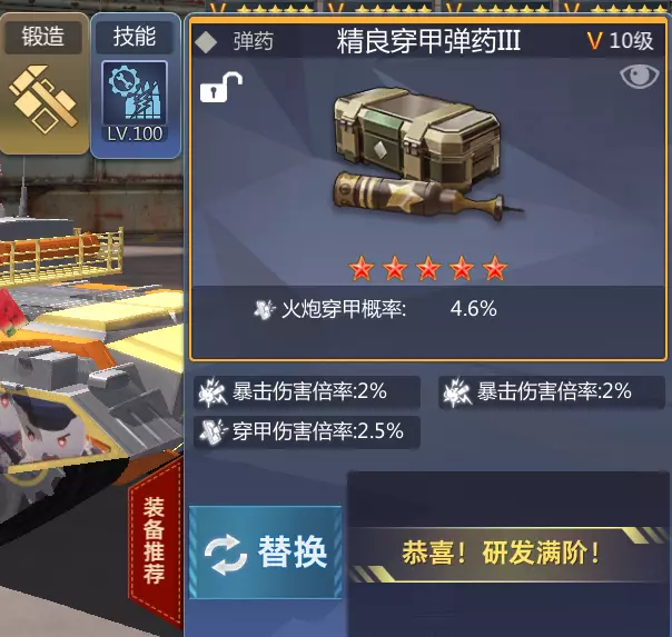弹药箱常规5星穿甲弹药箱足够配上VT-5S这款载具,改造技能推荐一个弹药保护,一个温压火炮也可根据自己的想法搭配其他火炮技能毕竟自己有自己的理解嘛。