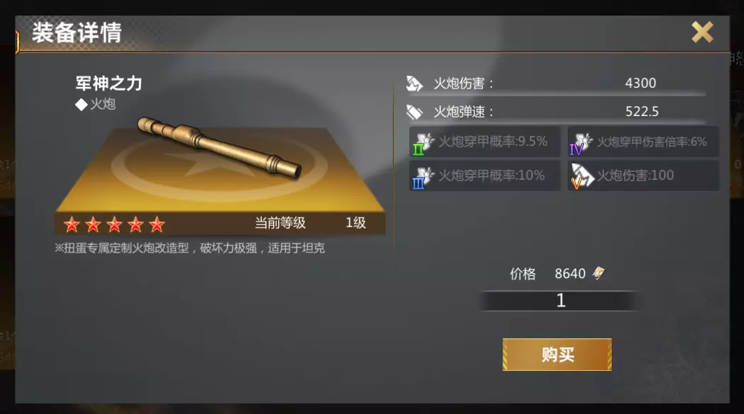个人认为可搭配军神之力这款火炮更能配合VT-5S这款载具,在战场上打出高额的伤害,