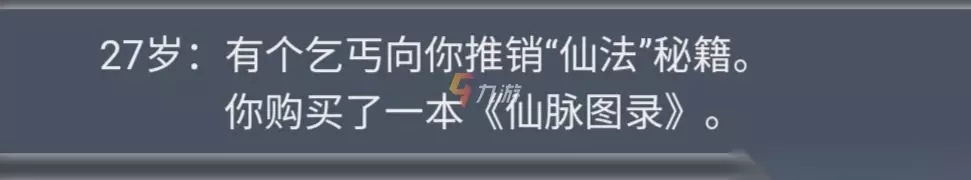 而乞丐事件可以分为两种情况,如果小伙伴们开局没有抽到轮回之外这个天赋的话,自身触发的就会是从乞丐那里买了《元神不灭》这本仙法秘籍;而没有轮回之外这个天赋的话,则就会买到《仙脉图录》这本仙法秘籍。