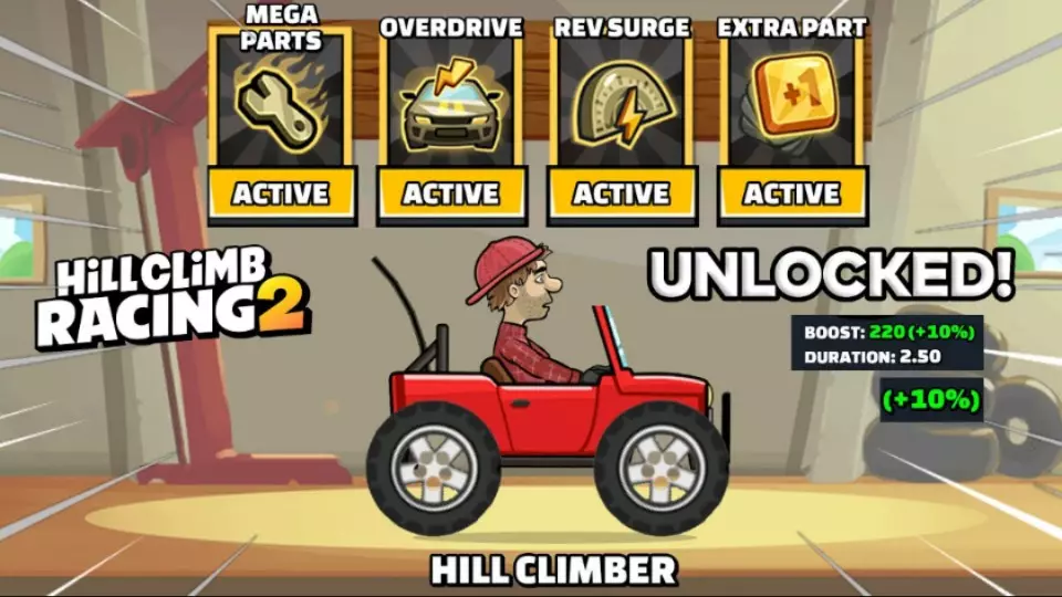 这是一篇关于手游《登山赛车2》的内容分享,回坑玩家带来岩石弹跳者车辆的相关情报,展示了该车辆在赛道中的行驶表现,以及其引擎、涡轮、轮胎、C.A.M.等可升级部件的相关信息。
