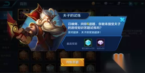 王者荣耀近日上线了最新活动夫子的试炼,玩家只需要回答问题便能获得丰厚的钻石奖励,但是夫子的试炼中有些问题非常刁钻,难以选择,但是答错会影响奖励,所以一份全面的问题答案大全是非常继续的,所以下面小编将带来这篇攻略,一起看看吧。 内容较多,建议直接搜索【手机浏览器查找页面内文字或PC快捷键Ctrl+F】内容查找问题 试炼在哪 您可以通过多人PVP模式游戏后结算掉落“夫子的试练”道具,它将会被放到您的游戏背包里,点击使用该道具便可进行游戏知识答题,完成答题后,将会根据您的游戏状态不同获得对应的奖励。在使用该道具时,会根据等级和段位不同会答对应的题库内容。 答题题库分为两类:新手知识答题和进阶知识答题,更高段位的玩家将会直接回答进阶题库题目。 该“夫子的试练”道具每天掉落一个,堆叠上限为一个,所以召唤师每天都可以进行答题。当对应的题库答完时,后续将不会再继续掉落该道具。