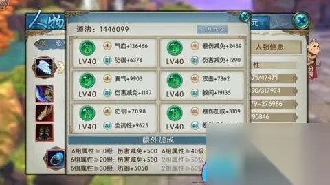 从理论上讲,道法属性中最为实用且最高效的是两个伤害减免和两个爆伤加成或减免(同种属性最多出现两个),实际上若能洗出一条伤害减免道法,收益已相当可观。