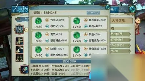 当所有元婴均达到20级但元宝不足以升至30级时,建议有选择性地进行洗练(归劫),随意洗练,若运气好,道法可能增加十几至二十万。洗练时,主属性不会变(若主属性为攻击,再洗练仍是攻击),但加成数值会有所变动(如初始加成100点攻击,洗练后可能变成200点,也可能减少,具体范围与元婴等级相关)。副属性会全部改变,其中最佳副属性为伤害减免,其次是爆伤加成和减免,然后依次是攻击、防御、气血、命中、真气等。