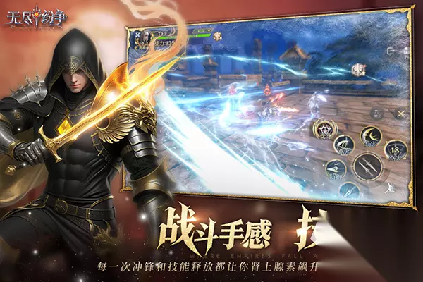 打造了更快的游戏节奏,在随机生成的各种关卡中,玩家都可对角色的多样格斗技能进行组合,这才是他们战斗的核心与特色。每一局6分钟就能够很快结束,但是需要在规定的时间内将敌人或者是boss全都消灭,拖动屏幕上方的不同位置,就可控制角色移动或者是进行技能的结合释放。 3、《无尽纷争》