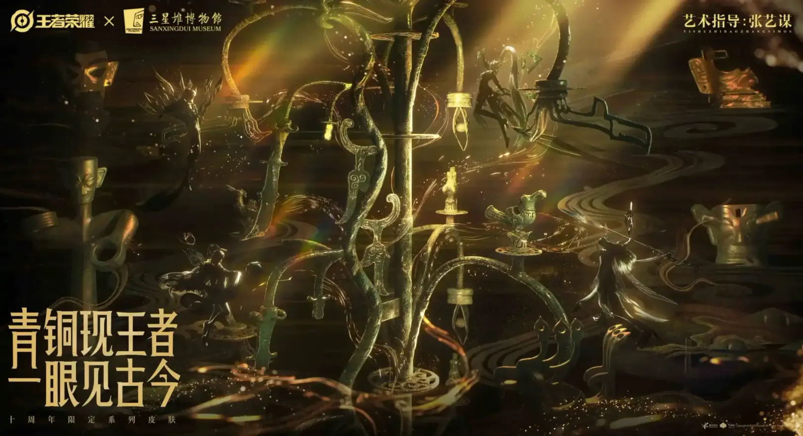 十周年限定三星堆主题系列皮肤,送1传说、1史诗,周年庆活动期间最低1050点券可得全套三星堆联动皮肤: