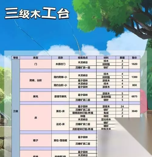红色枫叶树的位置 在游戏中,红色枫叶树是一种稀有的木材,它只能在特定的地点找到。其中最常见的位置是在游戏中的山区中,玩家需要通过探索才能找到这些宝贵的资源。 凤凰木的位置 凤凰木是游戏中最为稀有的木材之一,它的位置也非常难找。通常情况下,凤凰木只会在高山上生长,玩家需要通过攀爬山峰才能获得这种木材。 金属树的位置 金属树是一种非常罕见的木材,它的外观和一般的树木不同,非常耐磨。在游戏中,玩家可以在沙漠区域中找到金属树,但是数量非常有限。 合金木的位置 合金木是一种新型木材,它的外观和质感都非常独特。在游戏中,合金木只会在特定的季节出现,玩家需要在正确的时间和地点寻找它。 竹子的位置 竹子是游戏中非常常见的一种木材,可以通过探索森林或者花园来获取。它的质量虽然不如其他稀有木材,但是适合用来搭建一些轻盈的家居。