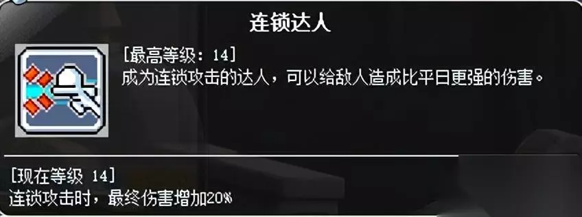 海盗职业群通用。4加暴击率,5加20%伤害,6加30%经验值。重点提一下这个被动满级增加40攻击力,吃装备攻击力百分比加成,所以主要五转技能满级后,骰子能升就升。 同理极闪满级被动提供30攻击力,这两个技能光被动效果都是完爆五转进阶祝福。(格子不够就别带祝福啦!) 另外等级高了以后,超速传动和强化战斗命令也可以带,前者偏爆发,后者偏常态,按需分配,优先级依然高于进阶祝福。 冒险岛奇袭者连招技巧