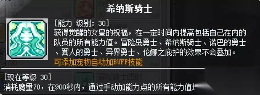 希纳斯的祝福,245级后灯泡领任务,强化为超越者希纳斯的祝福。满级打开后加30伤害,45秒内慢慢提升伤害值,最高提升120%总伤,CD240秒。(抠门女神) 评价:低配版终极无限,不吃增益。245级强化后增加5%真减伤(抠门女神),一般配合V4作为爆发BUFF使用,在V4的CD剩余40秒的时候开启即可。在BOSS战中如果生存压力很大,也可开启靠回血和真减伤提升存活概率(作用不大)。