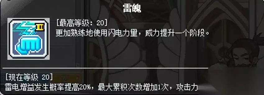 被动,主要增加雷电增益积累的概率和层数上限,后续还有类似的强化技能。 (三)二转技能
