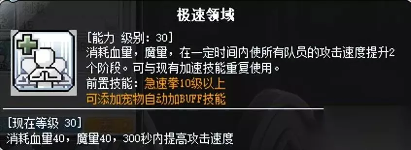 团队攻速BUFF,可放宏和宠物。奇袭唯一的团队增益技能。