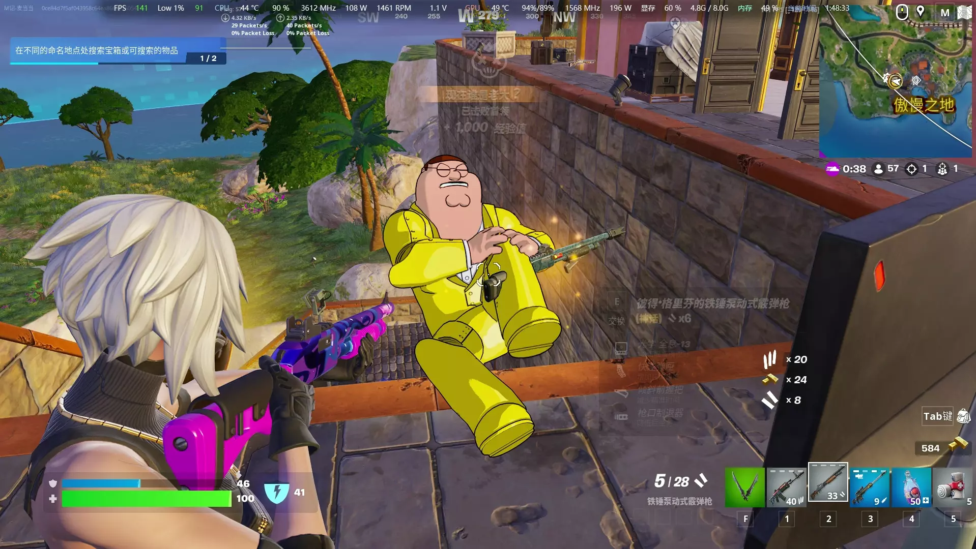 这是主播甲亢哥的《堡垒之夜》游戏视频,展示了他在游戏里极限1v6的精彩操作,包含搭建掩体、击败对手、查看物资等游戏过程,呈现了《堡垒之夜》的对战玩法。