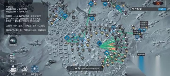 核心布局原则:以同心圆为主,功能扇区为辅 同心圆布局(推荐新手使用) 内圈(第0-1环):紧邻能量塔建造住宅(从帐篷逐步升级至工棚、房屋),确保所有居民全天候享有供暖,防止冻伤。每栋住宅容纳10人,在难民潮到来前应提前扩建居住空间。 中圈(第2-3环):布置医疗站、工作站、伙房等关键设施,依靠“蒸汽枢纽”科技延伸供暖覆盖。将工作站与托儿所相邻建设,可使科研效率提升至144%。 外圈(第4环及以外):安排无需供暖的建筑,如猎人小屋、灯塔等。猎人小屋仅在夜间运作(18:00-6:00),白天可释放人力支援其他岗位。