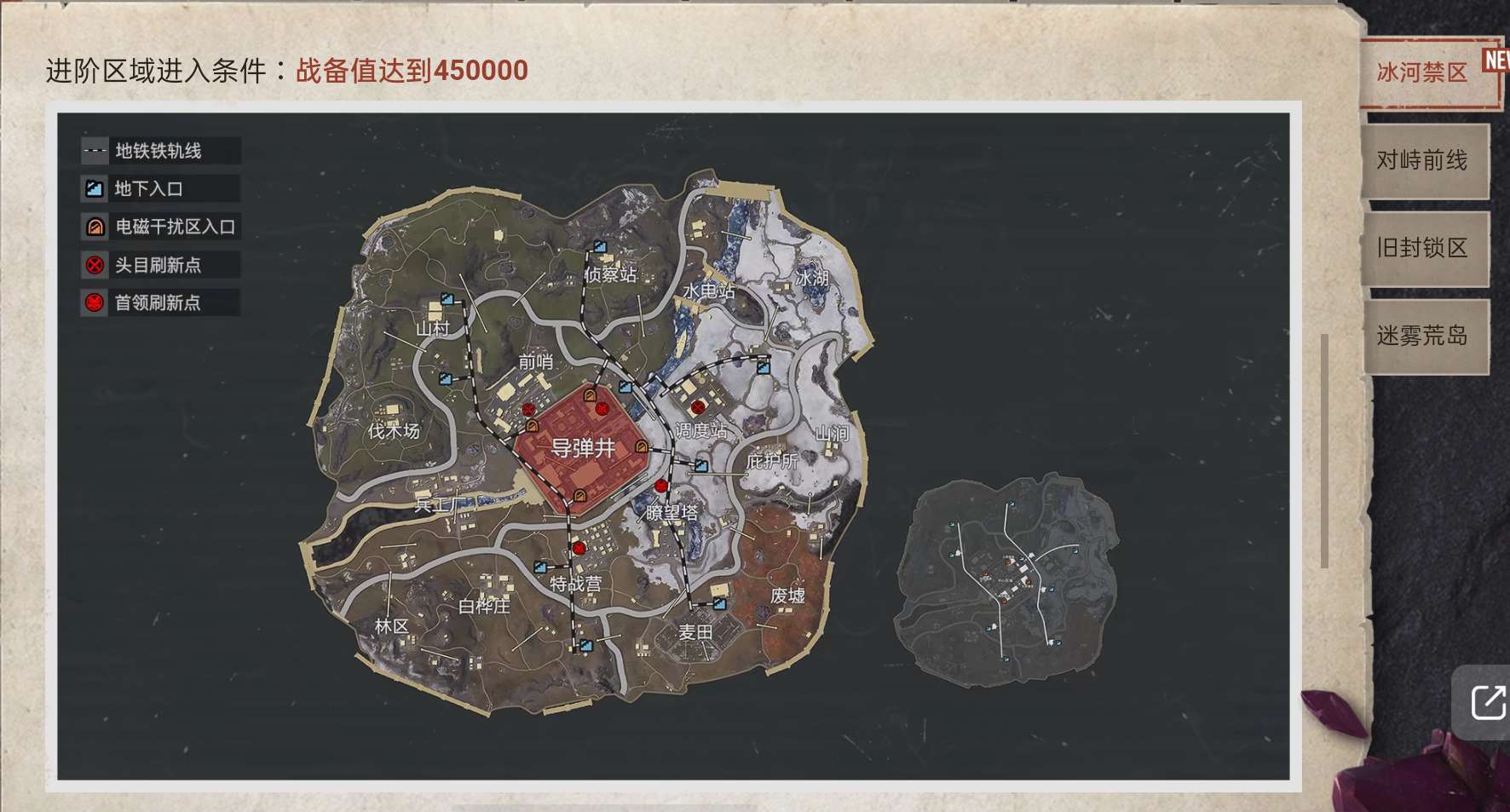 和平精英地铁逃生冰河禁区划分地图