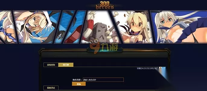 300英雄战绩查询系统开放,玩家可以登陆页面自助查询自己的战绩。在页面中玩家可以输入或者登陆账号来查看自己的战绩,由于大家一直都抱怨无法查阅自己的战斗力,所以官方特地的为大家建立了战斗力查询平台,让玩家可以自主的在页面中进行查询。