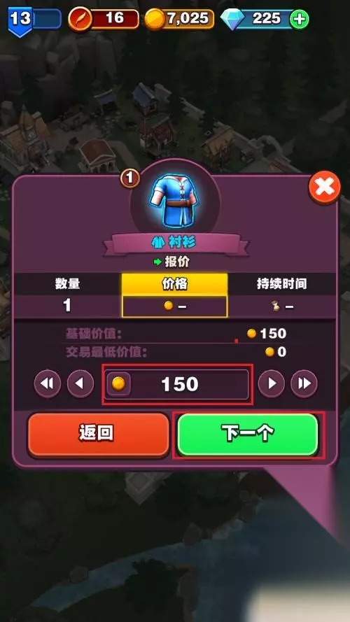 6.进入价格设定窗口,设定装备价格。点击下一个按钮
