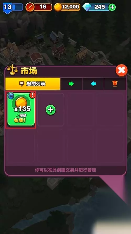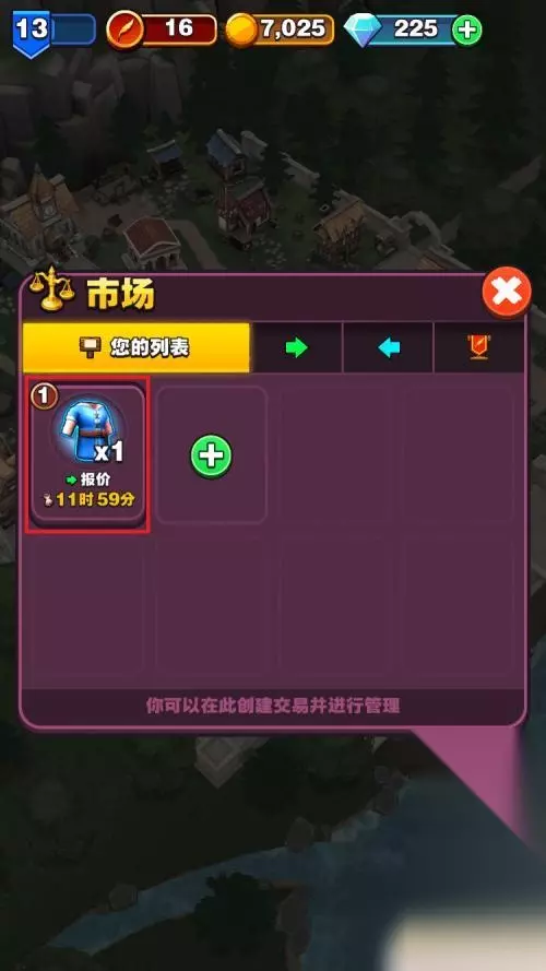 9.装备上架成功,如果装备售出可以点击获得金币。到此在游戏中的市场中售卖装备的方法就介绍完了。