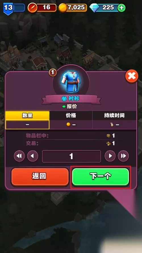 5.弹出装备数量选择窗口,设定完售卖的数量。点击下一个按钮