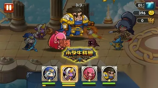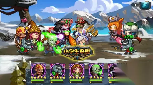 流畅半自动战斗 众所周知,动作游戏的打击感与操作感是最强的,但是无可避免地,会在策略性等其他方面有所弱化。卡牌游戏的策略性强,但是刺激性却不如动作游戏。而动作卡牌游戏则是两种独立游戏类型的一个折合点,其结合手机的操作特点而创造出的半自动战斗机制,大大简化了战斗中所不必要的繁琐操作。在《小学生联盟》的战斗中,玩家只需要掌握时机,释放技能即可,战斗节奏既紧凑又放松。