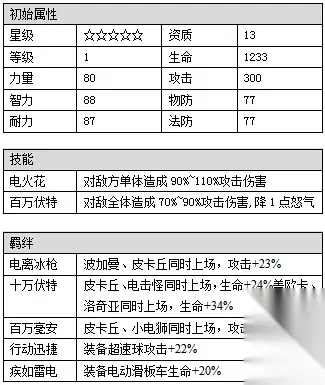 皮卡丘(ピカチュウ)是一只矮矮胖胖圆乎乎的类啮齿型神奇宝贝,全身的皮毛都是黄色的。它的耳朵很长,尖端是黑色的。它有小小的嘴巴,侧面看起来像一个数字3,还有黑色的眼睛。它的脸颊上有两个红色的圆。它的尾巴是像锯齿状的闪电,与身体相接的部分也有一片棕色的皮毛。尽管它确切来说是四足动物,更多时候它是站着并用两只后脚走路。住在森林中的它们通常以树果为食。它们用小小的电击把树果从树上打下来,这样就不必爬树,还可以顺带将其烤熟。 连吃个东西都这么萌,皮卡丘你准备让其他宠物小精灵情何以堪啊?话不多说,先来看看皮卡丘的属性吧!