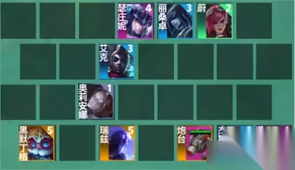 《云顶之弈手游》连败皮尔特沃夫玩法攻略 1:阵容由泽丽,猪妹,发条,蔚,杰斯,冰女,艾克,大头组成的; 2:然后冰女要一个皮城的转职,站位的话如图所示,按照图中的站位可以充分保护我们的主c;