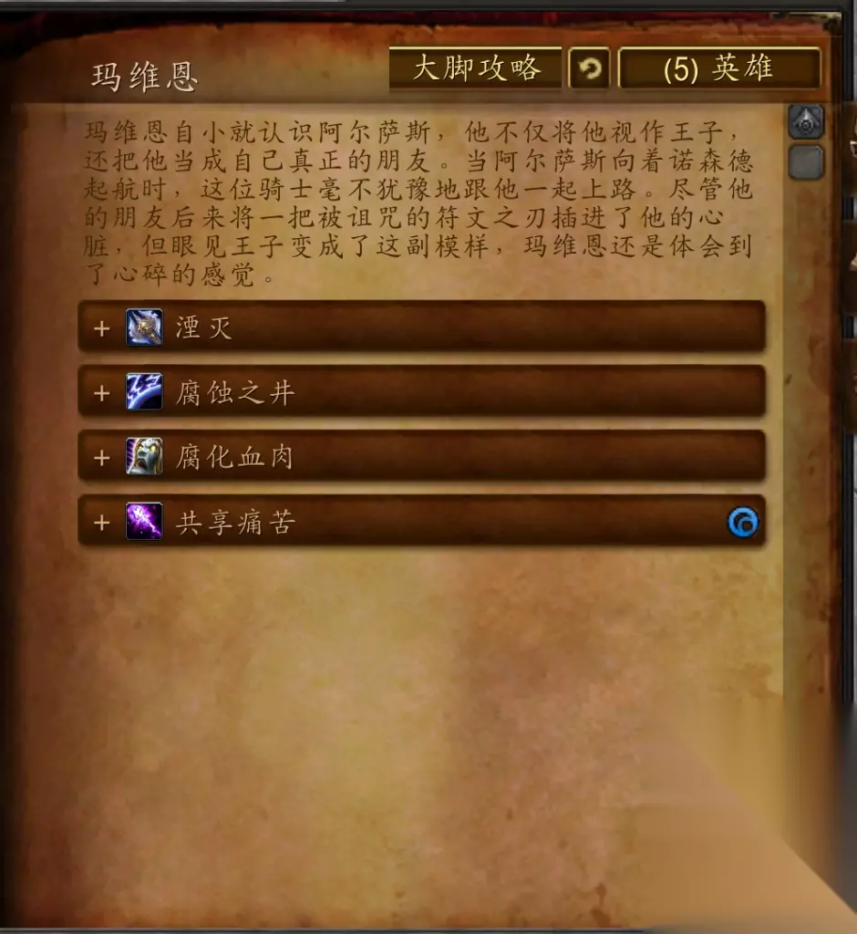 玛维恩从小就认识阿尔萨斯,他不仅将他视作王子,还把他当成自己真正的朋友。当阿尔萨斯向着诺森德起航时,这位骑士毫不犹豫地跟他一起上路。然而他的这位朋友后来背叛了他,将一把被诅咒的符文剑插进了他的心脏。眼见王子变成了这副模样,玛维恩还是为之感到心碎。