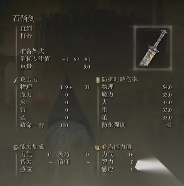 【biubiu加速器】最新版下载 点击下载 这把剑属于直剑类,擅长打击类的攻击方式。当玩家挥舞它时,可以感受到一种别样的战斗节奏。它的战技“准备架式”非常实用,玩家可以将剑与地面平行,随后根据敌人的动作选择轻攻击或重攻击。轻攻击能够由下而上斩击,突破敌人的防御;而重攻击则可以向前冲刺,进行突刺攻击。 石鞘剑的攻击力以物理伤害为主,达到了81点,对于喜欢近战战斗的玩家来说,这是一个相当可观的数值。虽然它不具备魔法、火焰、雷电或圣力的属性加成,但单凭这物理伤害,就足以在战场上占据一席之地。