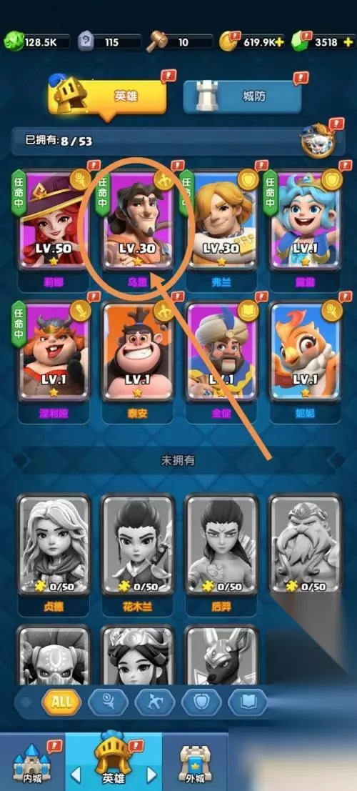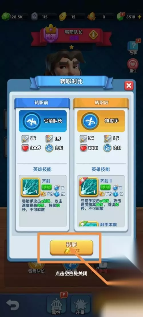 2.跳转到英雄界面后,点击【需要转职的英雄】。