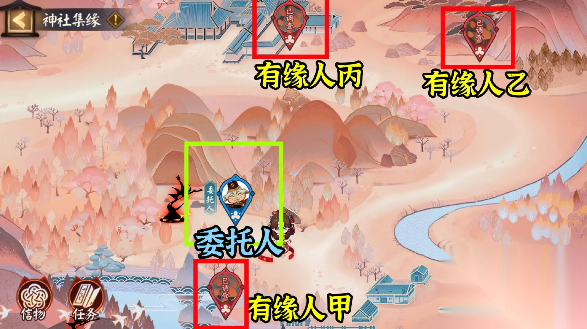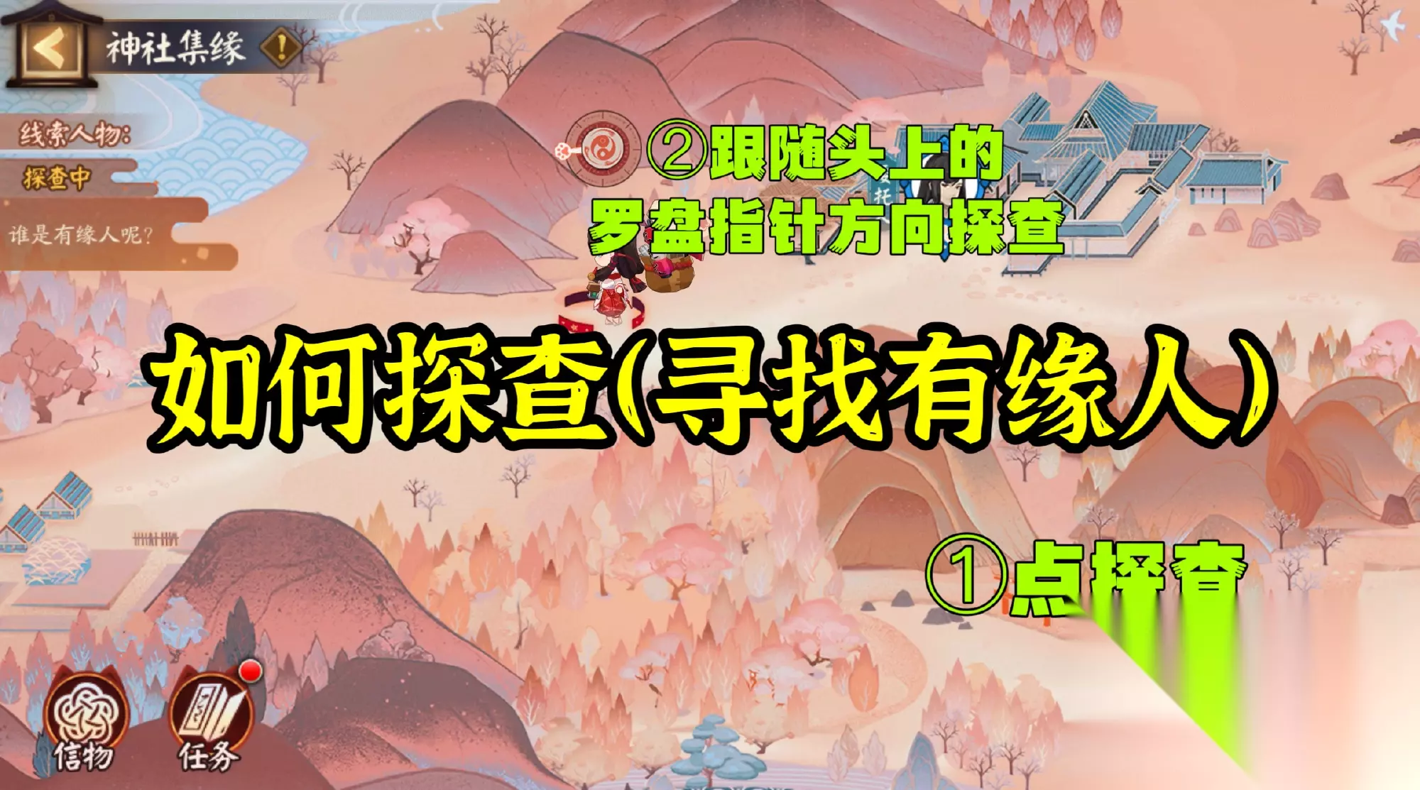 阴阳师神社集缘day2怎么选?神社集缘活动进入到第二天,很多玩家想知道第二天的神社集缘如何选择,那么小编下面就为大家带来神社集缘第二天的有缘人选择推荐,一起来看看吧。 阴阳师神社集缘day2有缘人选哪个好 day2玩法攻略: 1、进入活动(点庭院小黑猫猫进入)后,点击探查,然后跟随头顶罗盘指针所指方向,寻找有缘人。