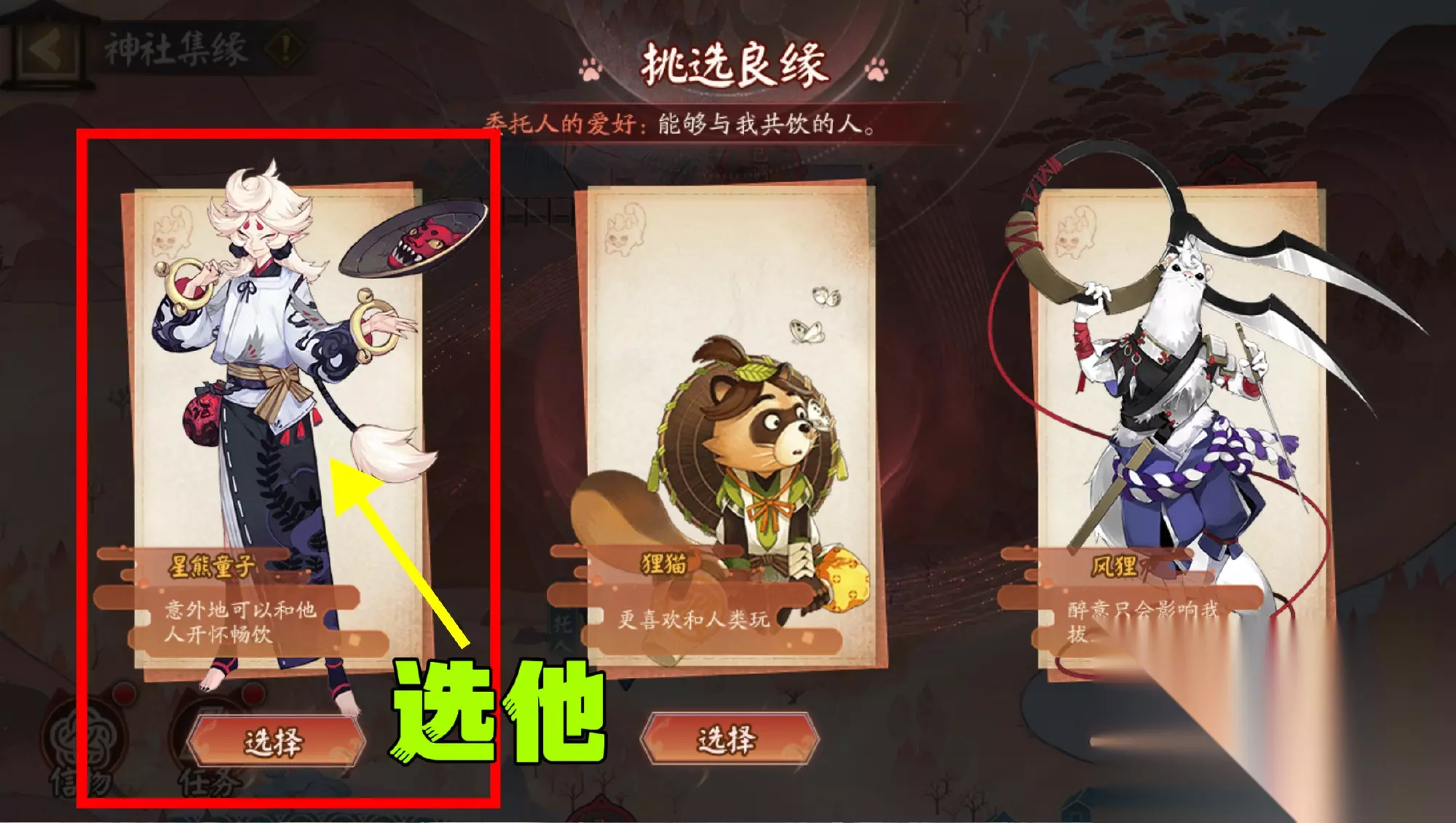 3、今日良缘提示:“能够与我共饮的人”,今日有缘人:星熊童子。(选错有缘人不影响奖励)
