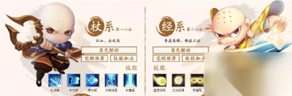 三、唐三藏 优点:魔多,攻击高,技能强大。 缺点:血少,防御能力弱。 尽量先升血,再升血,再升暴击也可以,但不如升魔。 属性:水 使用武器:杖、经。 技能: (玄冰破裂).水分身.寒冰锥.天降甘露.水魔爆)。 经系心法技能(普度圣印.立地成佛.紧箍咒.佛光普照.正法金刚)。 原型是唐僧。在游戏中,法术强大,体回血,攻击法攻高强。