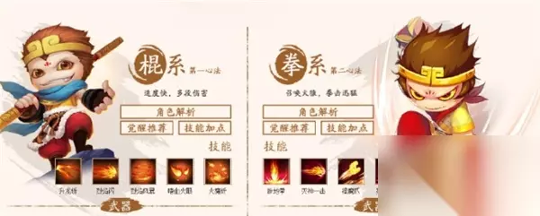 二、孙悟空 优点:暴击高,血量高。 缺点:少魔时攻击略低,不算非常好用。 建议:升被动时,可以选择先升暴击或者血量增加。不升魔的原因是最多加75魔,用处不大。没用的时候尽量不要先升魔。但是回魔也可以。 属性:火。 使用武器:棒、拳。 技能: 棍系心法技能(升龙斩).烈焰闪.烈焰风暴.嗜血火眼.火魔斩)。 拳系心法技能(辟地拳系心法技能).灭神一击.擒魔爪.残影连打.火猿出击)。 原型是孙悟空。西游4中攻击速度快,可造成多次伤害,攻击高暴击,灵活性强。