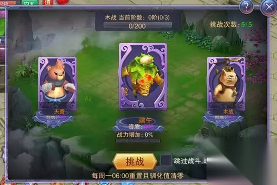资质越高的宠物,激活后增加的战力越高,挑战难度也越高。 只要击败宠物后,即可获得15点驯化值,同时宠物出于好感,会与你玩猜硬币游戏:每次选择正反其中一面。如果猜中了,就可以获得大量驯化值,并且获得下一次猜硬币的机会。如果失败了,可以选择离开或者花费一定勾玉改变硬币朝向,从而赢取驯化值并获得再次猜硬币的机会。注意,每次击败宠物后最多可以猜硬币5次,每一次获得的驯化值都会更高。 只要驯化值到达指定值,就会自动获得对应宠物的魂片一张。凑齐足够的魂片,就可以前往宠物——图鉴处进行激活。