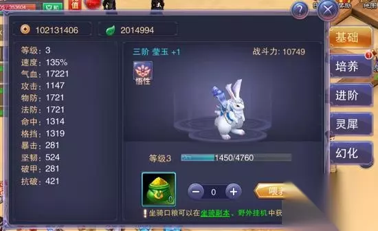 玩家等级30级并完成主线任务后,开放宠物修行功能:消耗成长晶玉,就可以对宠物进行培养。修行等级越高,人物获得的属性加成也就越高。修行等级每达到整十级,就会激活一个宠物成长境界,获得额外属性加成。 坐骑系统