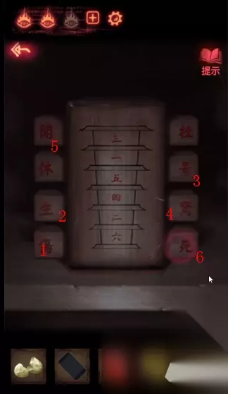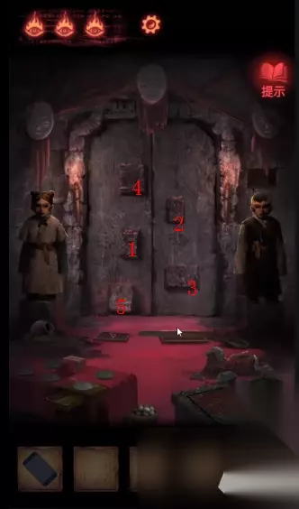 6. 眼睛之门:解开密码,获取铜钱。