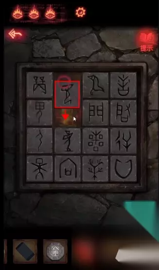 3. 拼字游戏,根据提示拼出正确文字,打开石板柜子。