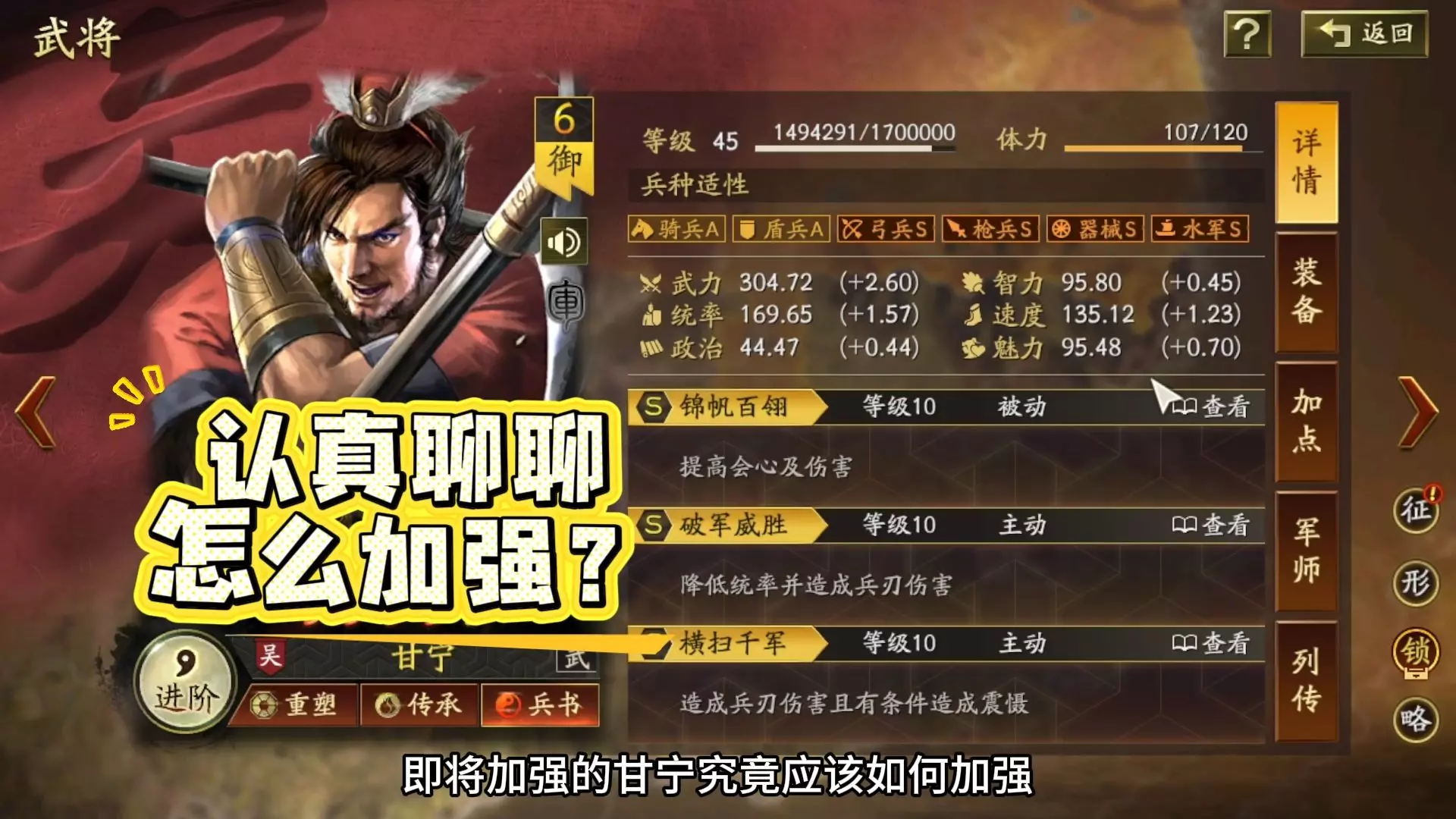 老伙计甘宁,该怎么加强?
