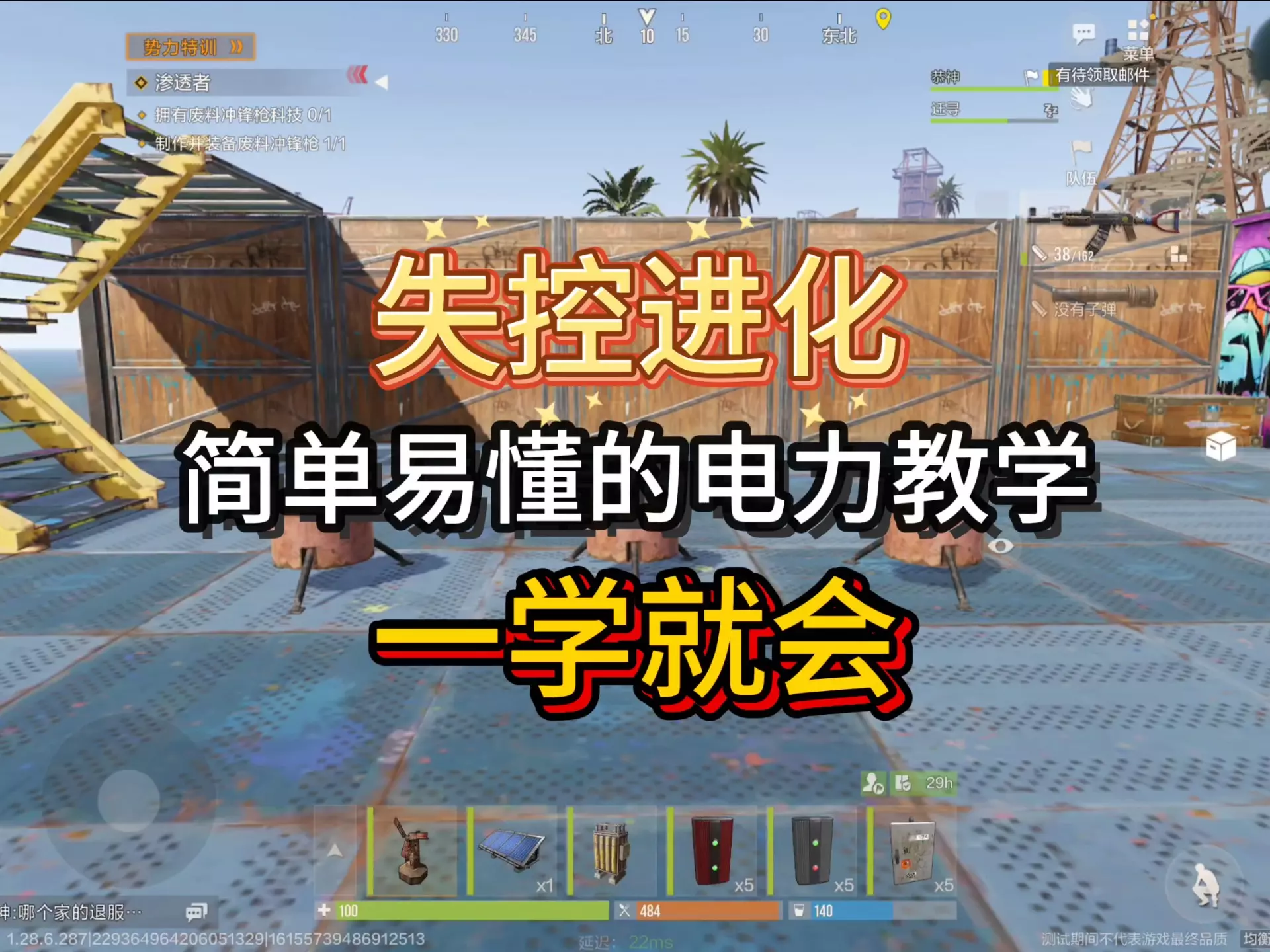 这是一期《失控进化》的保姆级电力教学内容,通过实操演示,讲解了太阳能板接蓄电池、太阳能板连合流器等电路操作,还介绍了电路的组成,帮助玩家掌握游戏里的电力相关玩法。