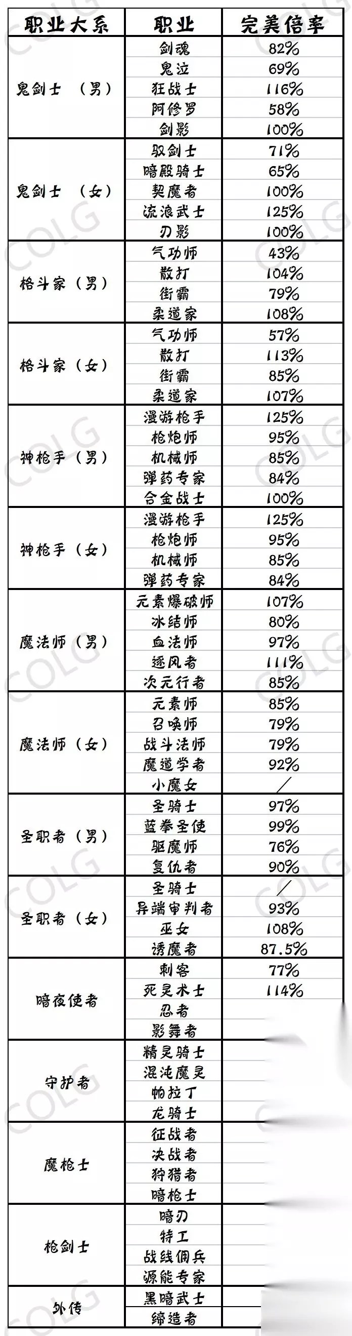当前版本全职业完美换装 注:由于绝版原因,不考虑异界“绿皮”换装。