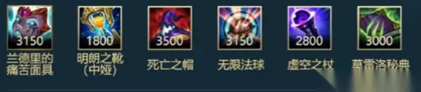拉莫斯<<<详细攻略 6.古拉加斯 出装推荐:兰德里的痛苦面具 中娅 死亡之帽 无线法球 虚空之杖 莫雷洛秘典