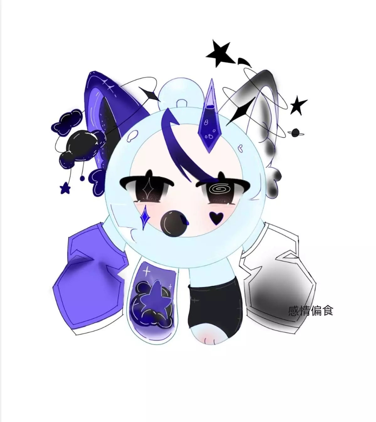 对,蓝粉,这↑用的私设,主要是耳机不会画😃🥰