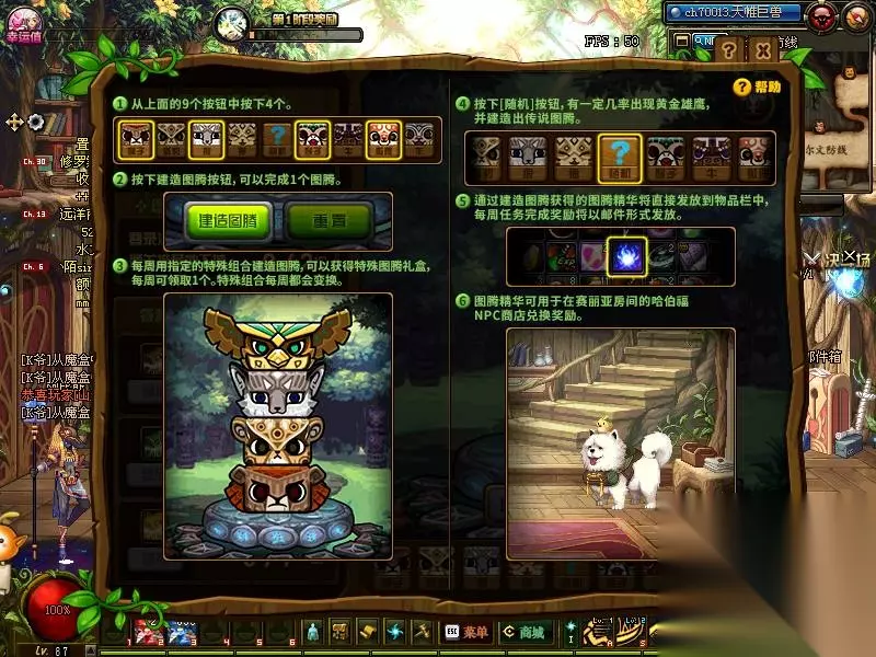 传说图腾 首先我们来看这种图,其实说的很清楚了 要想要传说图腾,必须要一个随机,而且当随机出现黄金雄鹰的时候,建造出传说图腾 而经过小编多次的测试发现,其实一种传说图腾的排列组合为 鹰,豹,师,猴 鹰是随机,然后放上豹子,狮子,猴子 传说图腾就这样造出来了 是不是很简单呢!