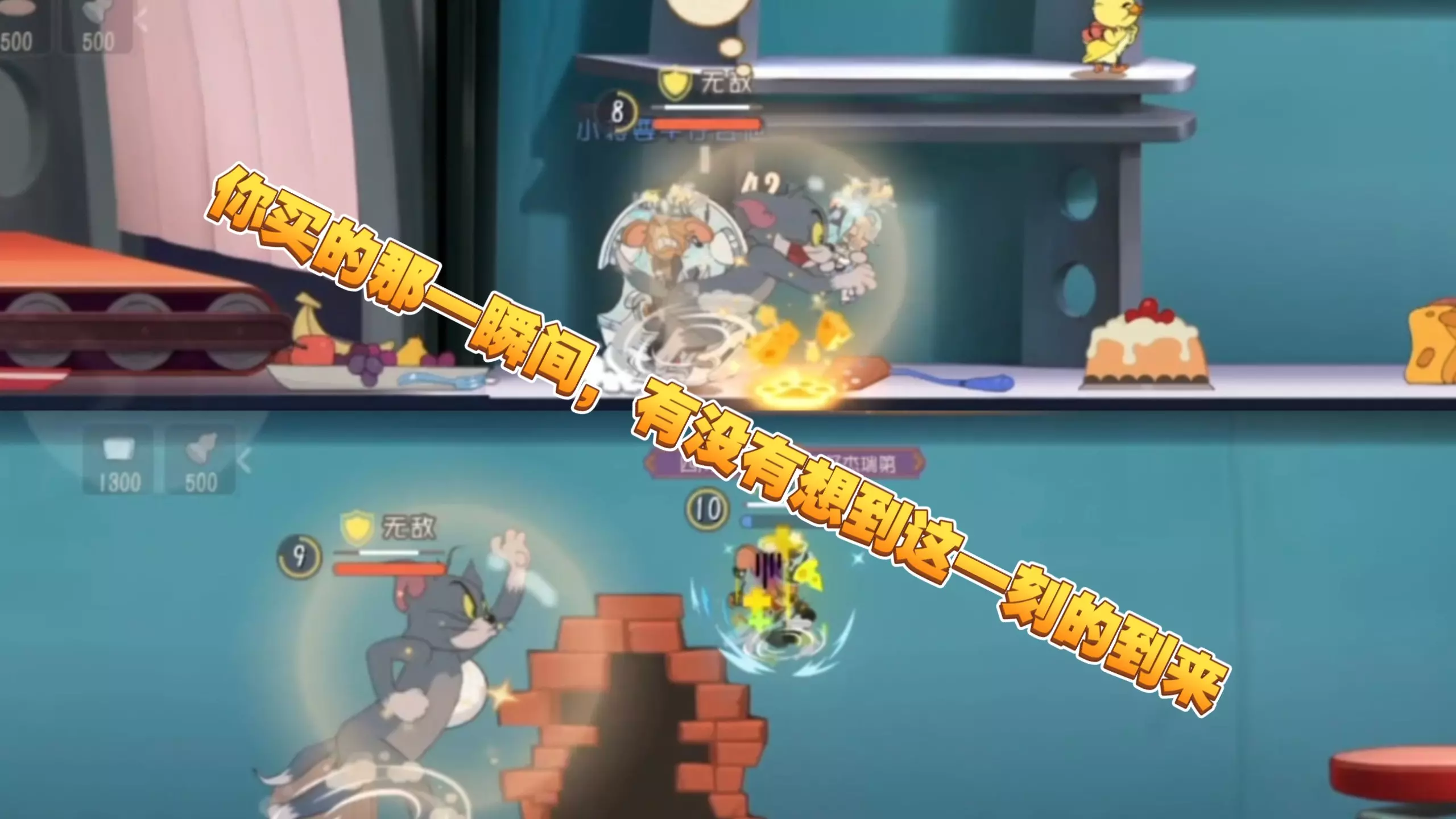 这是《猫和老鼠》手游的对战内容,玩家操控猫方汤姆,在对局中与剑客杰瑞等鼠方角色展开对抗,虽处于劣势但最终实现翻盘拿下胜利。