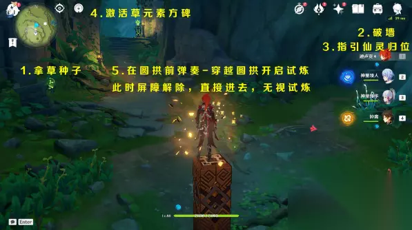 2.按照下图所示完成解谜,圆拱挑战建议还是完成一下,完成之后就永久解除屏障;