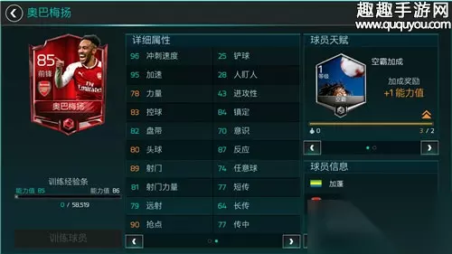 奥巴梅杨的身高187,在前锋里可能算高的,但要和后卫一比那还是差了点。奥巴梅杨速度很快,但力量和头球能力并没有很突出,相比之下,空霸天赋对他最大的加成主要在抢点能力上。所以说,利用自己高速的跑动前插接队友传球破门是空霸奥巴梅杨比较适合的战术。 抢点控球型空霸球员:英斯