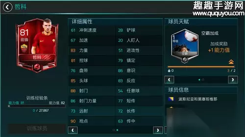 空霸天赋增加球员的头球,力量,射门,抢点以及控球能力。头球,力量以及抢点这三项完全属于高空球能力,也是这个天赋主加的项目。通常来说到了后期,不管这个球员之前在这三项属性上的数值是不是很差,天赋加完后有的初始体格不是很壮的前锋已经能在争顶过程中把后卫挤开了。 桥头堡型空霸球员:哲科