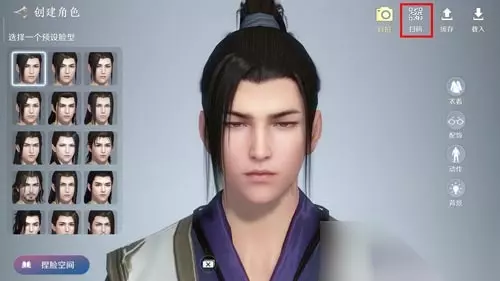 天涯明月刀手游捏脸数据导入方法 1、登录天涯明月刀手游,进入创建角色页面; 2、点击右上角的【扫码】,允许天涯明月刀手游访问你的相册;