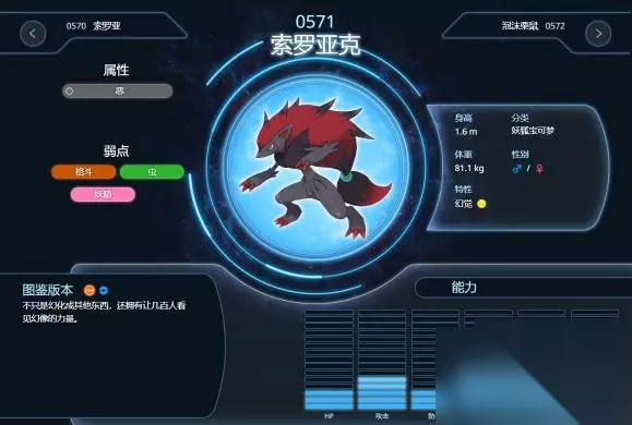 索罗亚克是实力超强的幻兽,本身种族值并没有达到神兽标准,不过却可以利用自己特殊能力来改变外形幻化其他神奇宝贝,甚至变身为他人的样子,在剧场版中它不仅变成炎帝、水君和雷公这三只二级神兽的样子出现在人类面前,还完全地具备了这三圣兽应有的力量,说它超神一般的存在。 索罗亚克的幻觉能力远胜进化前,它不仅能幻化成其他东西,还拥有让几百人看见幻像的力量。虽然索罗亚克制造的幻象十分逼真,能够彻底骗过人类与其它宝可梦的各种感官,但无法造成任何直接的物理影响。 洗翠的样子的索罗亚克从犹如生物般蠕动的长发散发出的怨恨能量,不仅会向对方展现恐怖的幻影,还会从对方的身体内外造成伤害。据说此幻影会呈现出仿佛憎恨着世间万物的模样,其恐怖的程度甚至会让见者无法保持理智。
