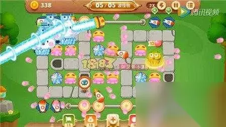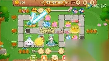 选择炮塔:章鱼、瓶子炮、冰冻星、手电筒 这个关卡一共才5波,所以一开始游戏就为我们奉上了 不少的金币,所以一开始玩家们可以多种点炮塔,可以在移动的位置放上手电筒,然后用章鱼放角色旁边,然后清理障碍物,手电筒的杀伤力还是比较大的,所以我们可以合理来清理障碍物速度还是比较快的。 保卫萝卜3公园第35关开局布阵