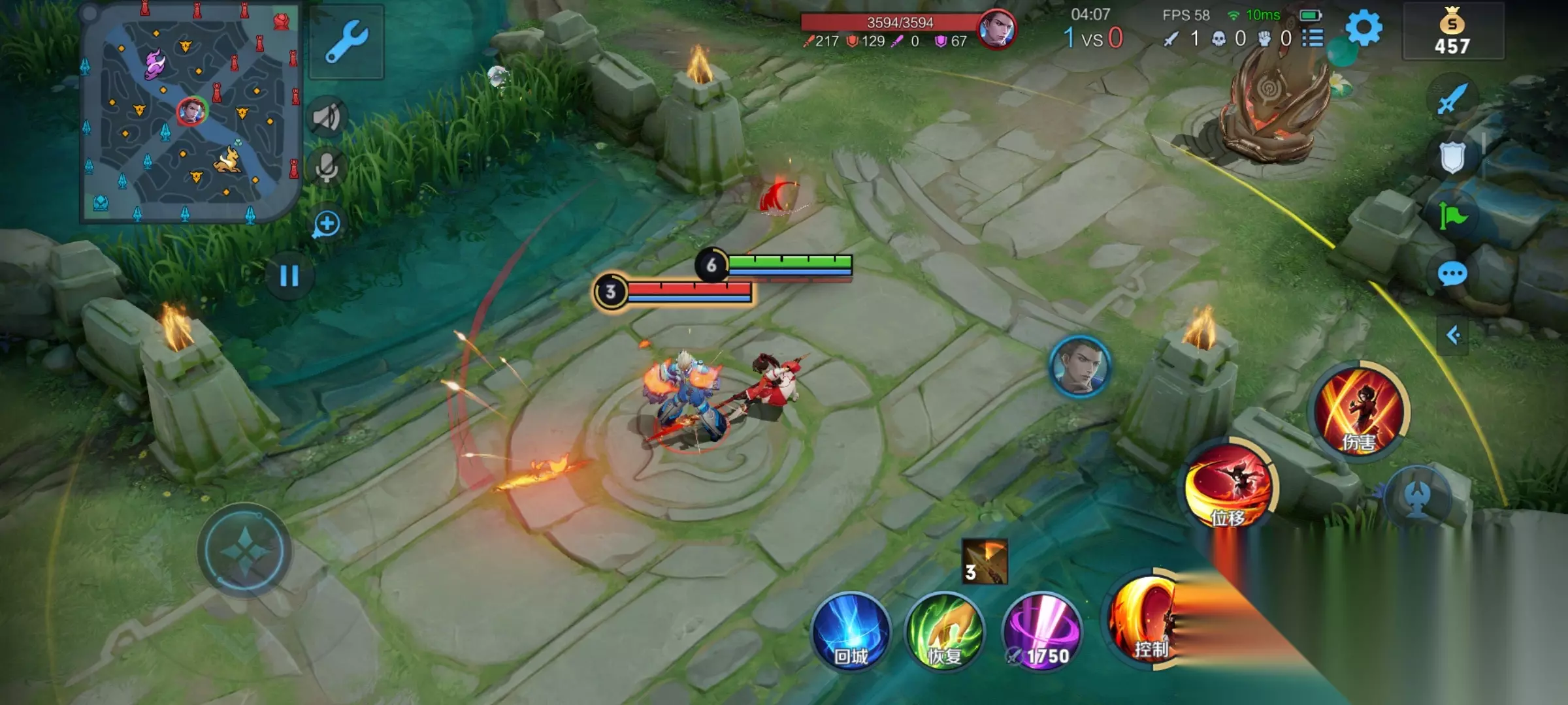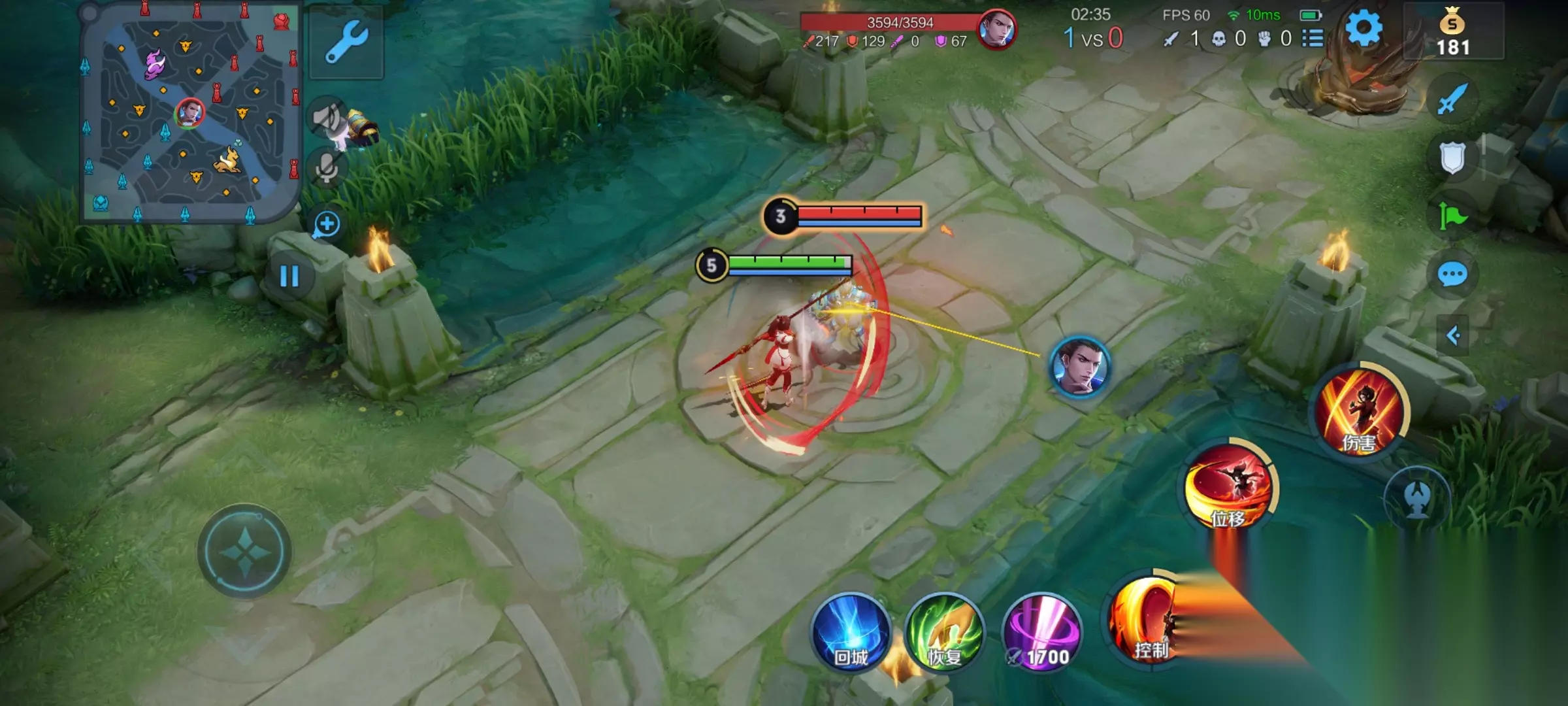 这个伤害虽然说不是很高,但是你要注意了,云缨每释放一次枪意,就能减少一二技能1.25秒的CD,这时候可以考虑一波前期刷野连招,1A2A打出两层枪意,一共可以减少技能2.5秒的CD,加上蓝Buff20%的CD减免,前期就可以更频繁的释放技能,加快刷野效率。 到后期装备成型,云缨的1A2A连招就可以做到一二技能无CD刷新,打消耗、粘人非常有效,另外,风火轮对塔也能造成伤害,利用小连招无限刷新技能,拆塔非常快。 第二段枪意:云缨连续发出三次越来越强的攻击,造成伤害同时回复 血量,生命值越低,回复值越高。