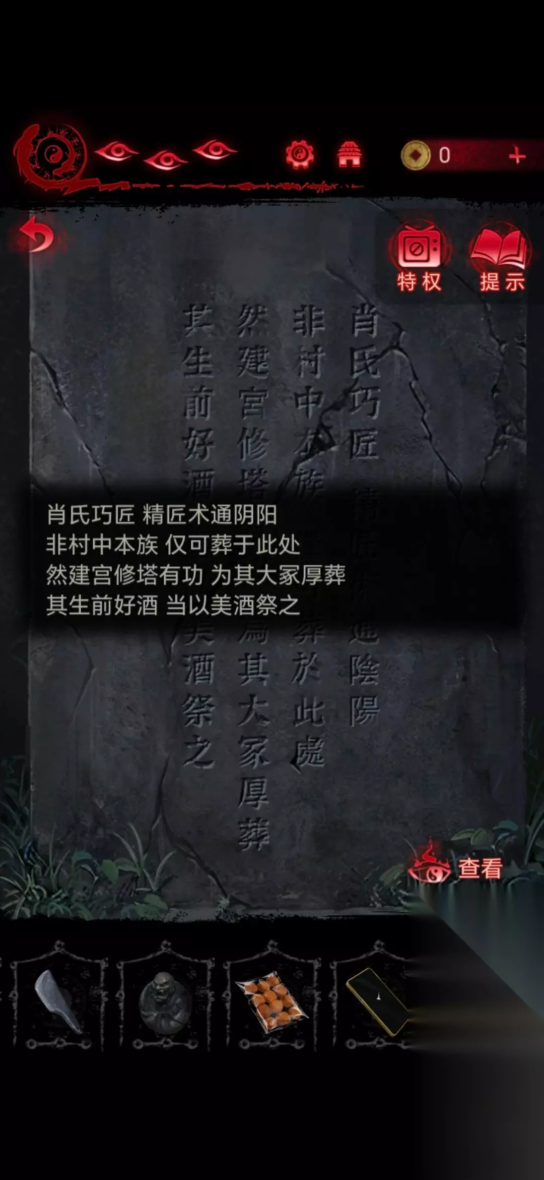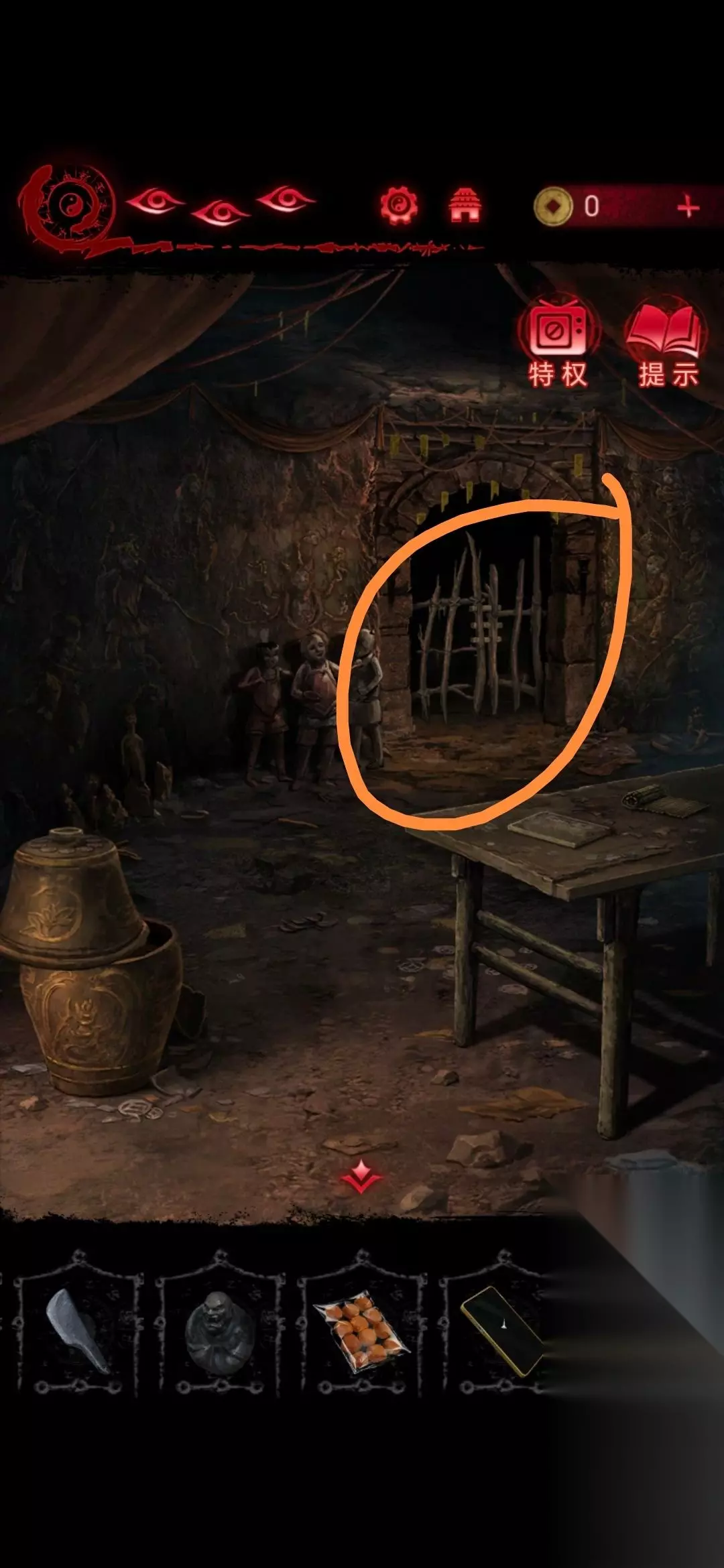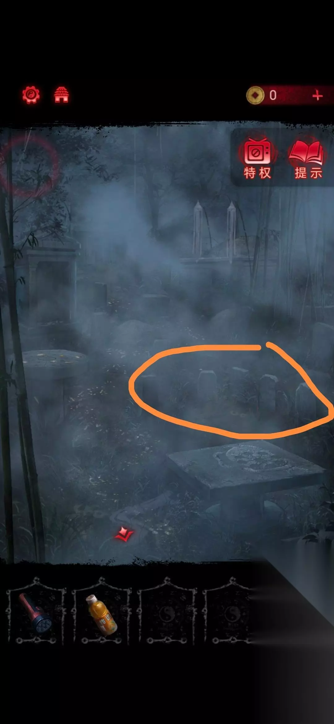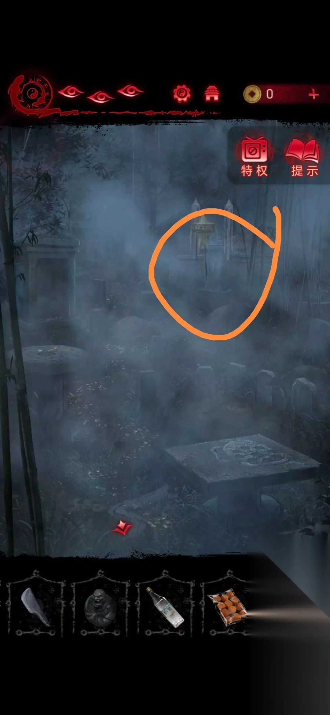 20、然后把元宝和小面包放在墓地情景的石桌上,这个顺序是要根据石碑内容摆放,摆放好就会出现路;
